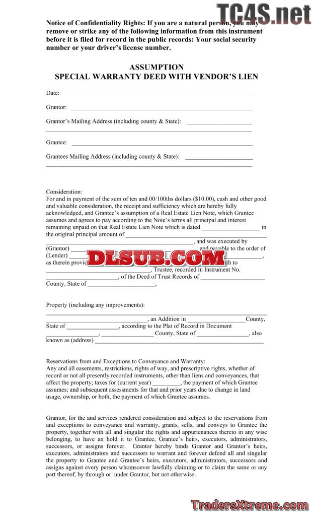 Assumption Special Warranty Deed - JPG Image File