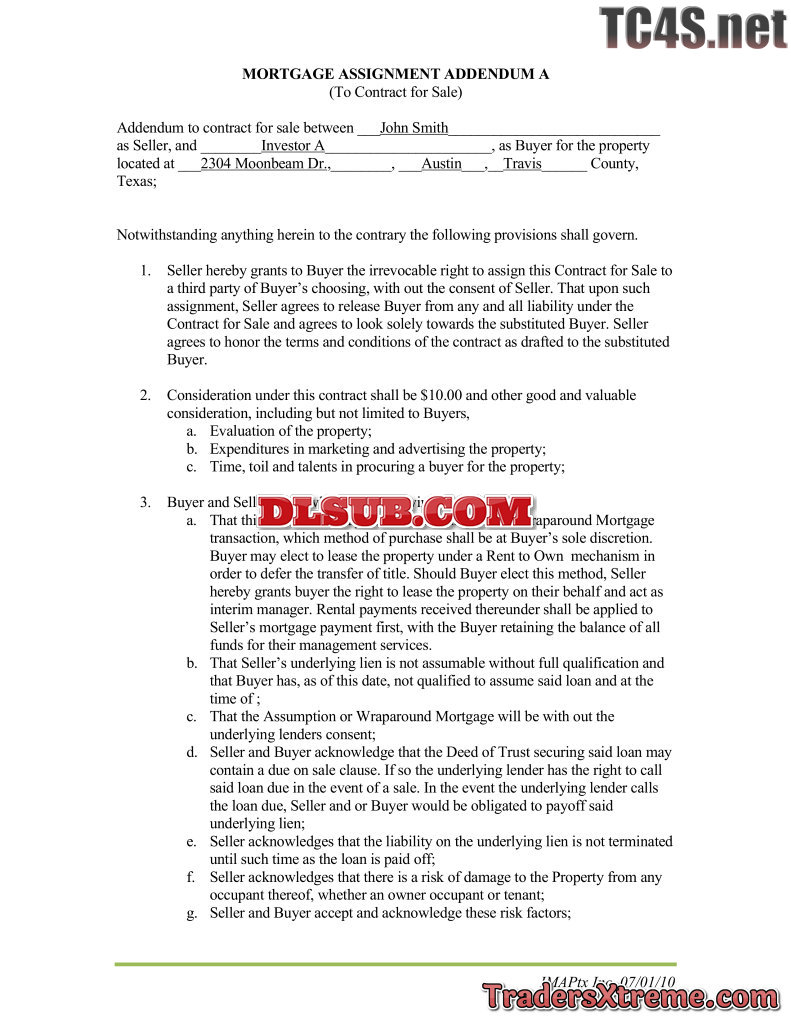 Mortgage Assignment Addendem New - JPG Image File