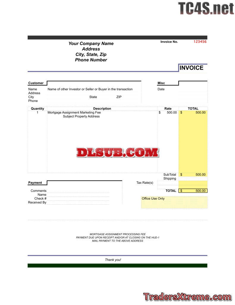 Invoice To Title Company For Services Rendered Full - JPG Image File