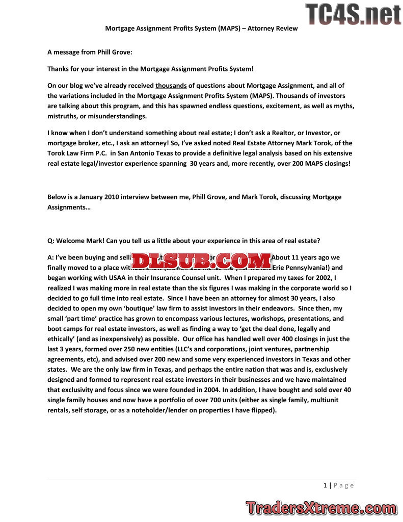 Phil Grove Mortgage Assignments Profits System