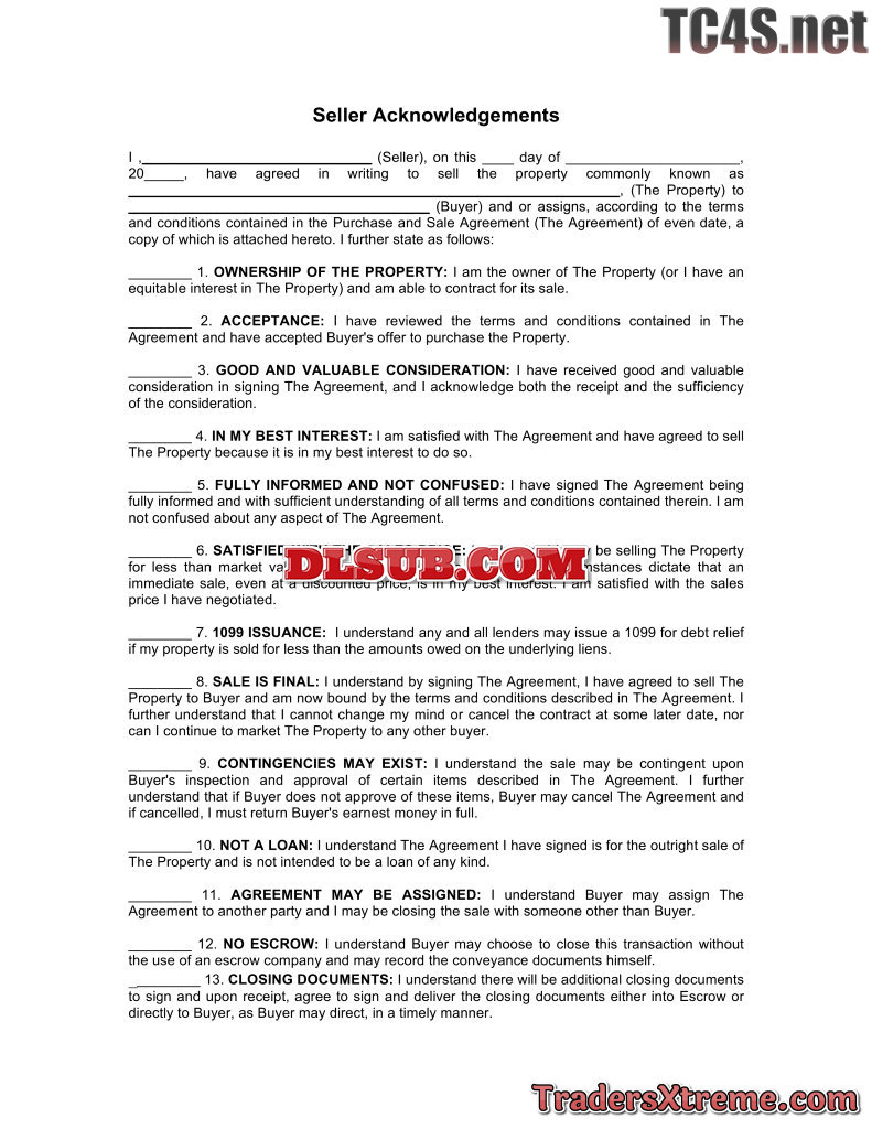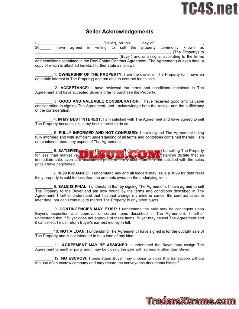 Seller Acknowledgements Short Sale - JPG Image File