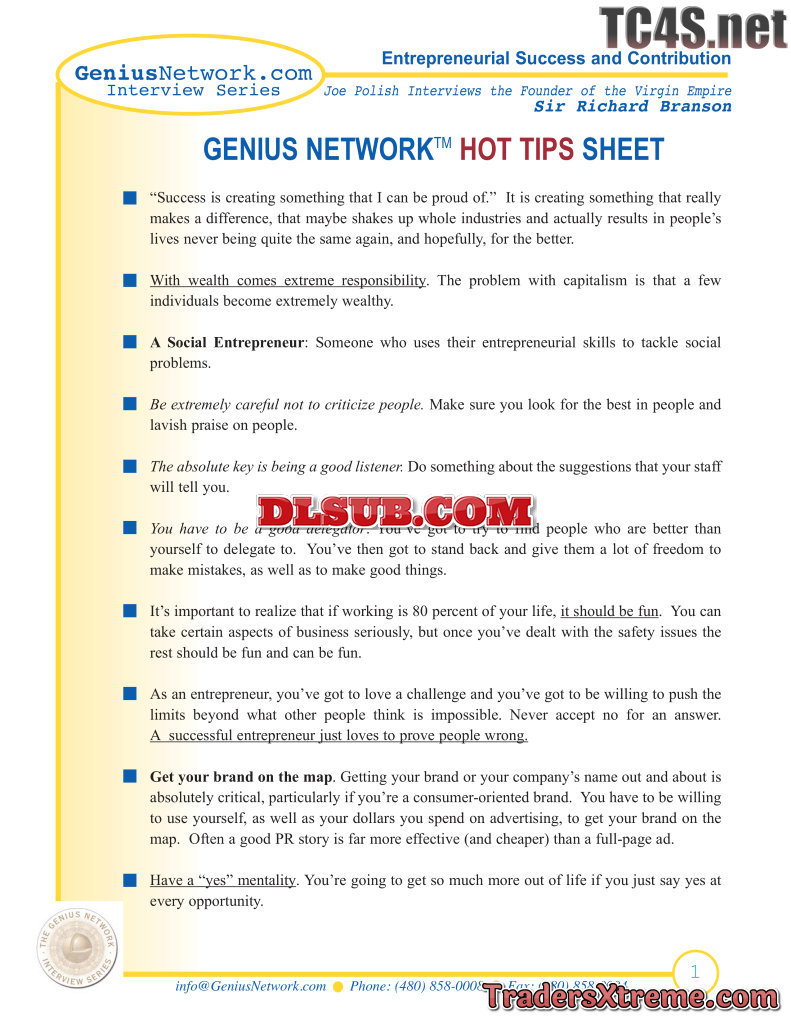 Genius Network Richard Branson Interviewed By Joe Polish - JPG Image File