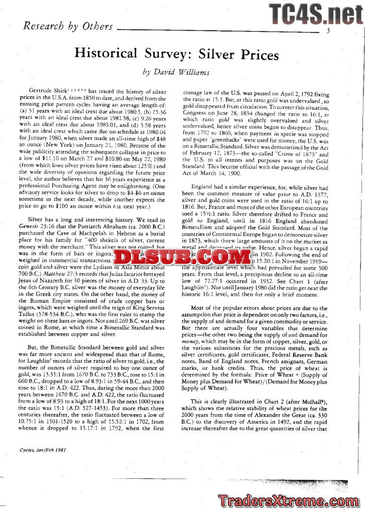 Williams Lcdr D 1981 Historical Survey Silver Prices - JPG Image File