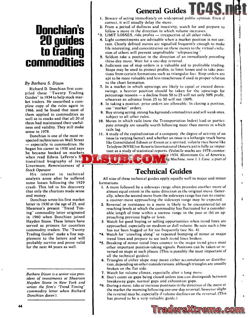 Barbara Dixon Donchians 20 Guides To Trading Commodities