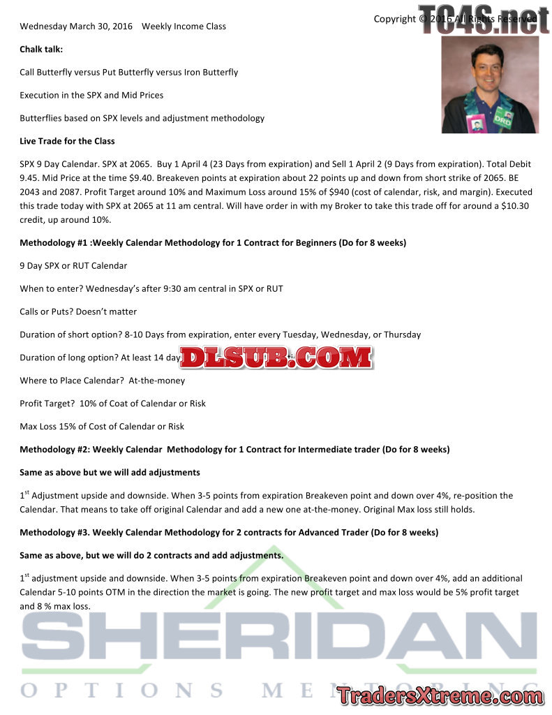 Dan Sheridan Trading Weekly Options For Income 2016