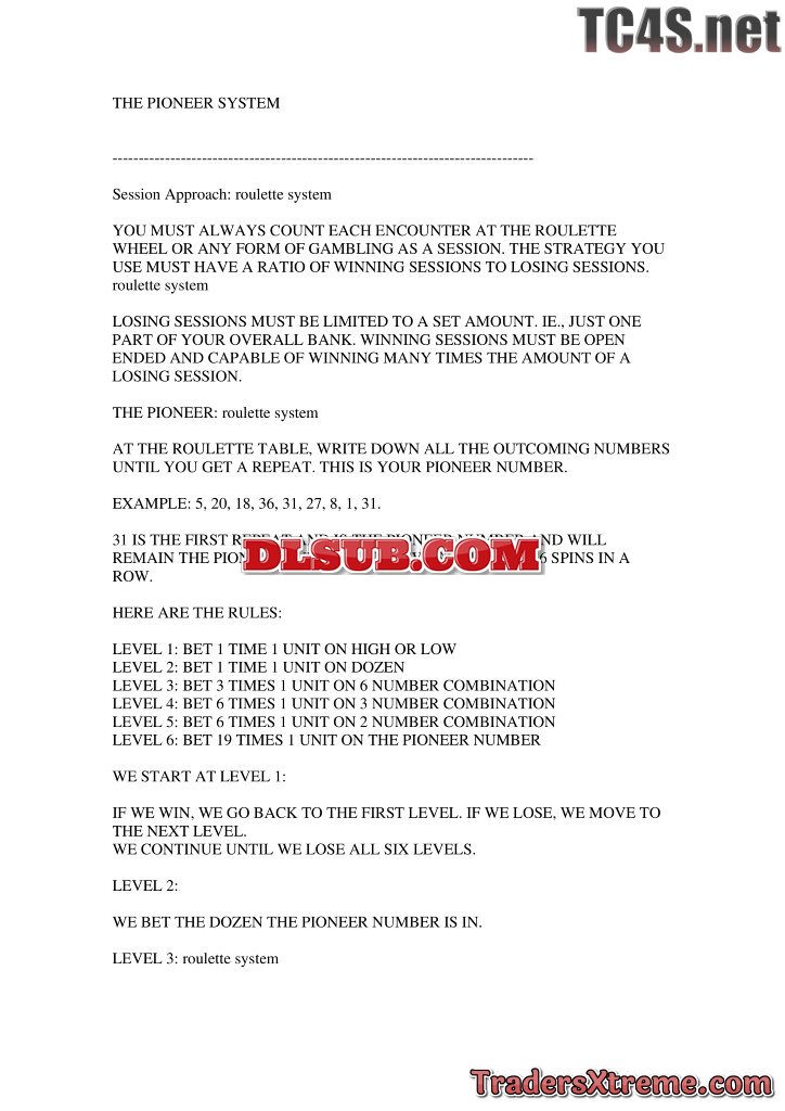 Pioneer System For Roulette