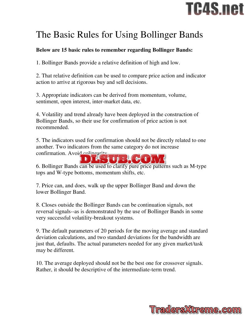 Bollinger Band Formulas - JPG Image File
