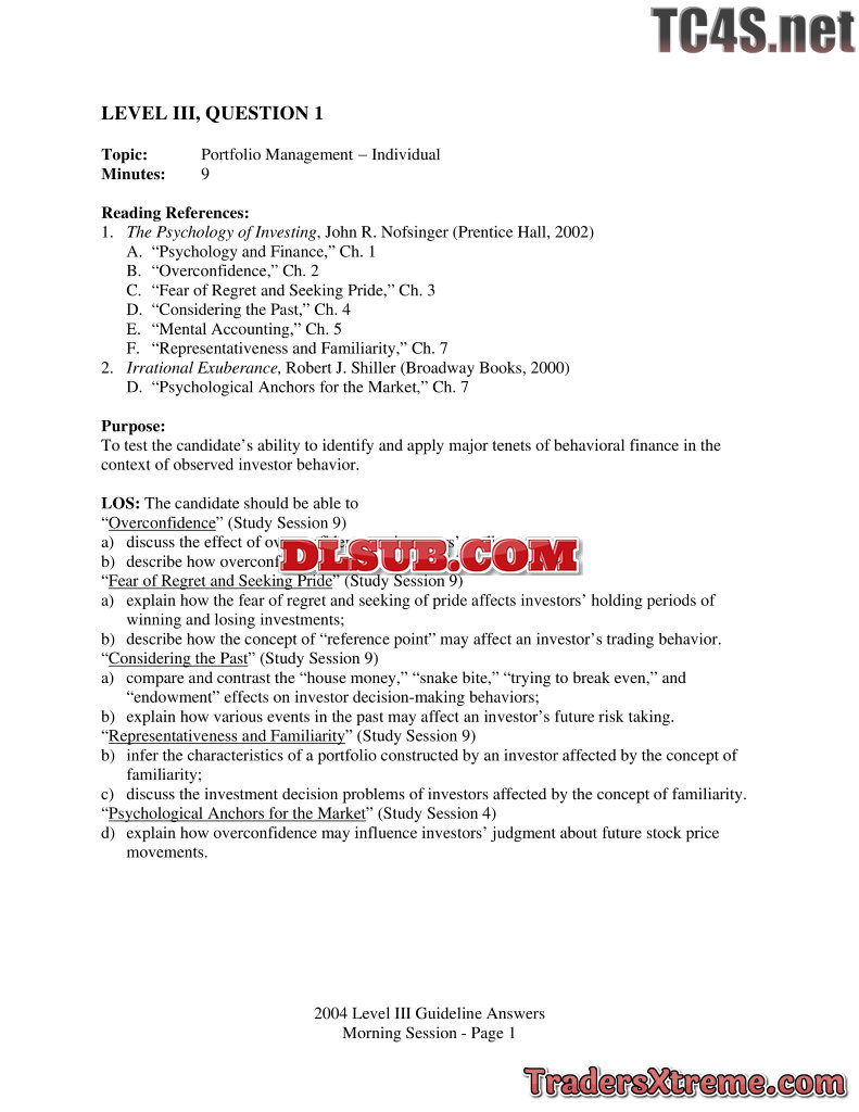 2004 Cfa Level 3 Examination Morning Session Essay