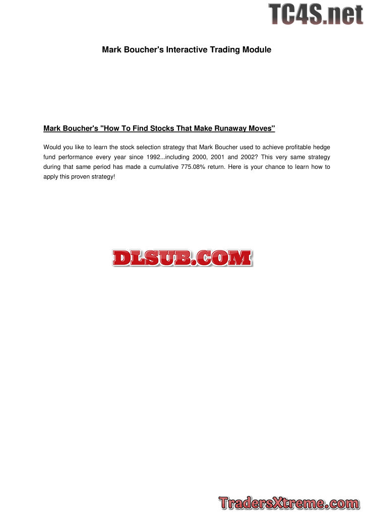 Mark Boucher How To Find Stocks That Make Runaway Moves