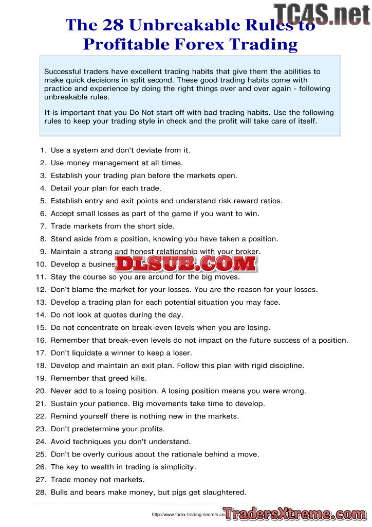 Unbreakable Rules Forex Trading - JPG Image File